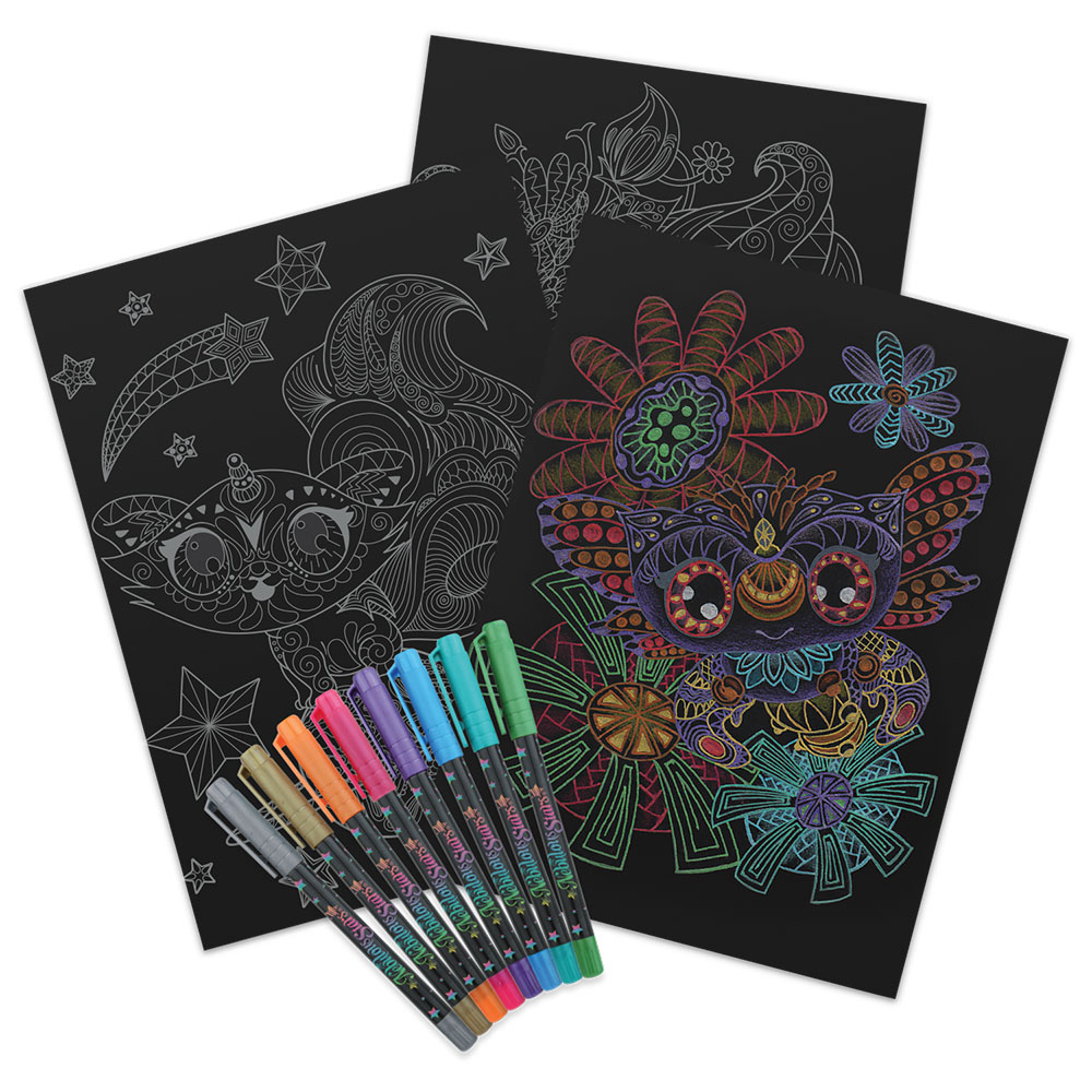 Bojenje je opuštajuća aktivnost koja potiče kreativnost, a kada bojiš gel olovkama na crnom papiru – doživljaj postaje prava čarolija!