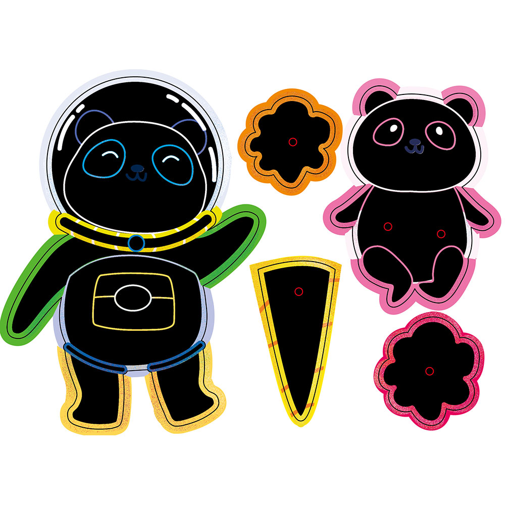 Jednostavno stružite po predlošku na crnom papiru da biste otkrili boju. Sadrži umjetničke scene i zabavne likove s kojima se možete igrati! Odlična aktivnost za poticanje fine motorike i koncentracije kod mlađe djece.
