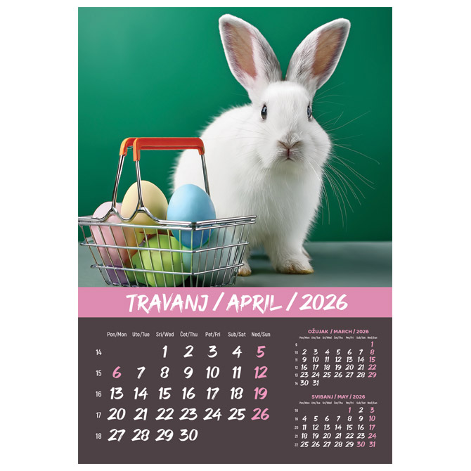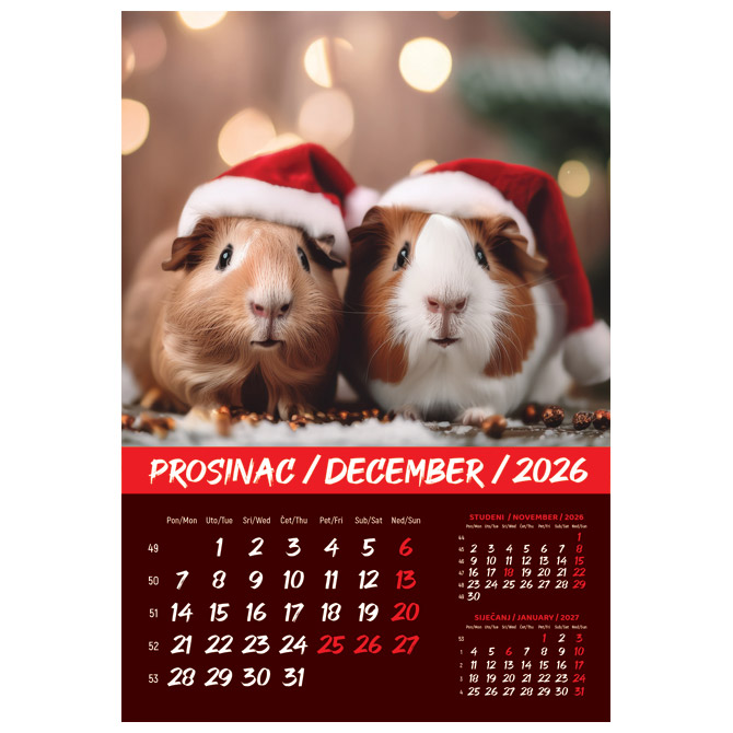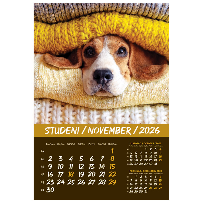 Kalendar “Kućni ljubimci 2026” 13 listova, spirala