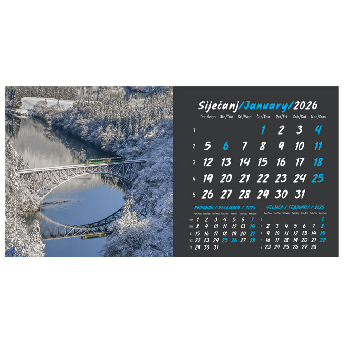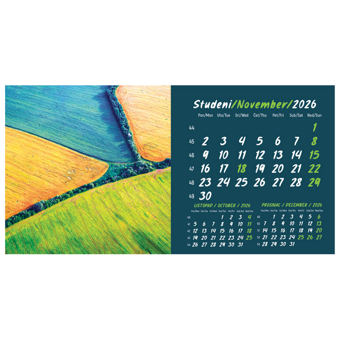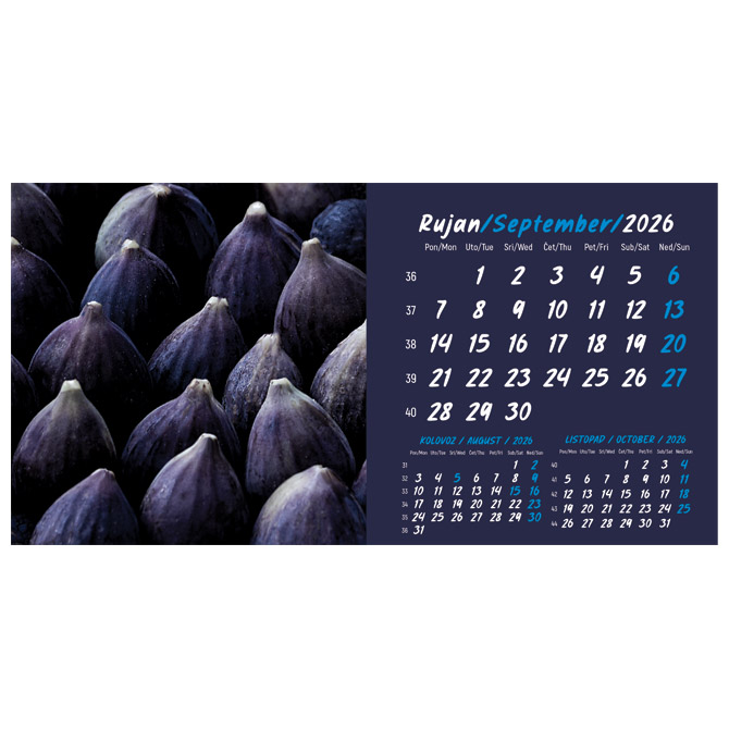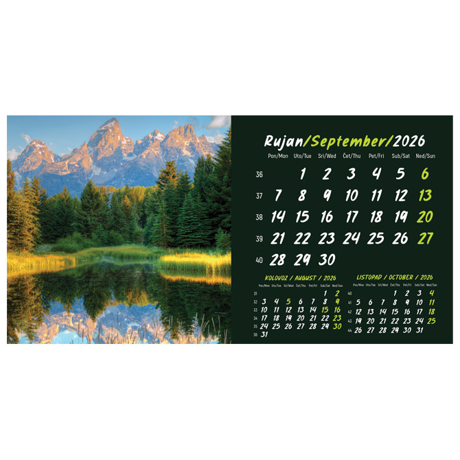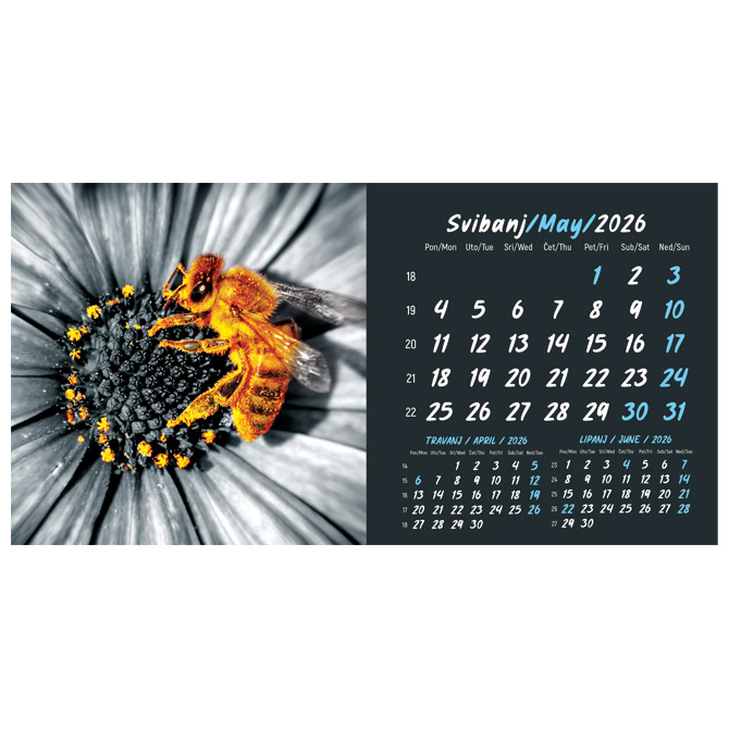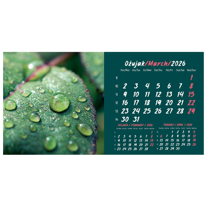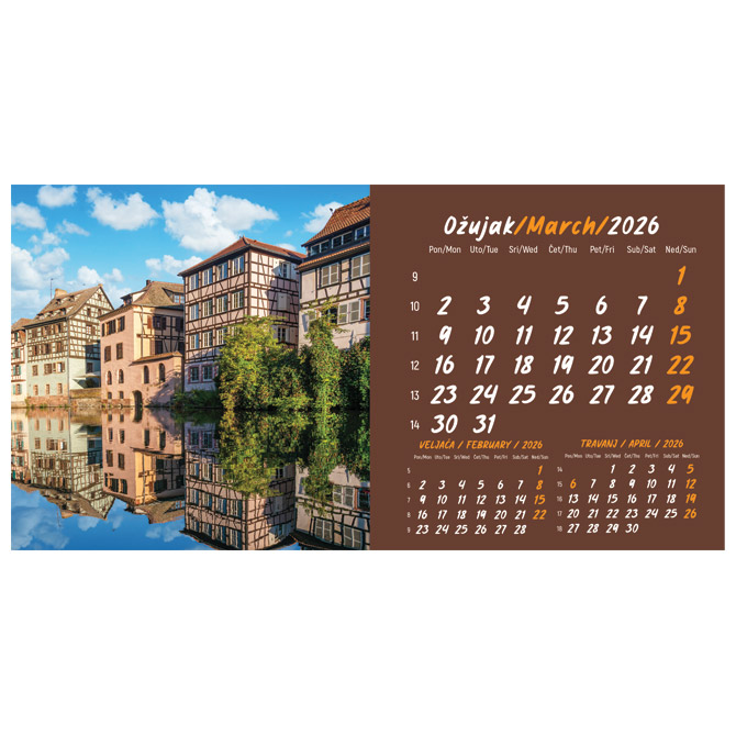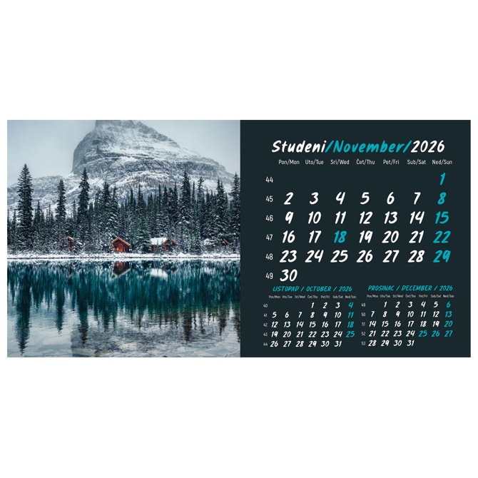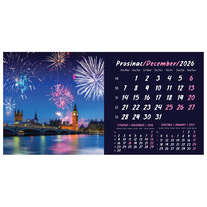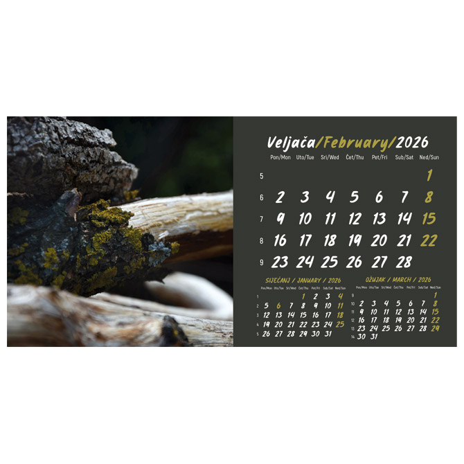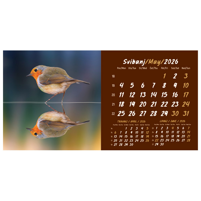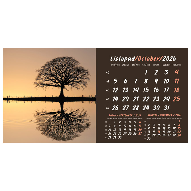 Kalendar stolni mali 2026. 13 listova, obostrani, spirala