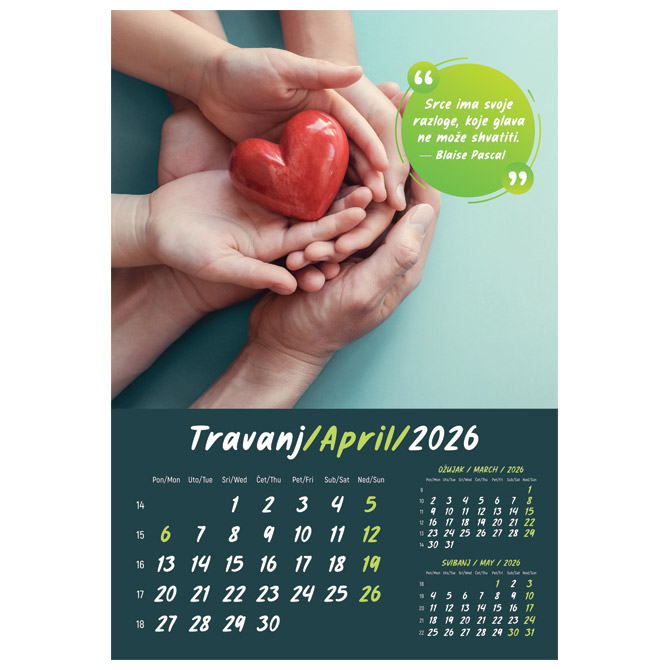 Kalendar “Zrnce mudrosti 2026” 13 listova, spirala