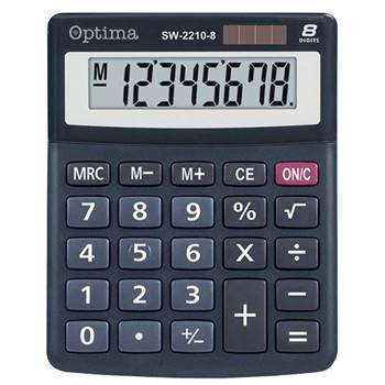 Optima kalkulator ima zaslon s 8 mjesta, dimenzije 13,4×10,7×3,4 cm, te može se napajati putem baterija ili solarnog napajanja.