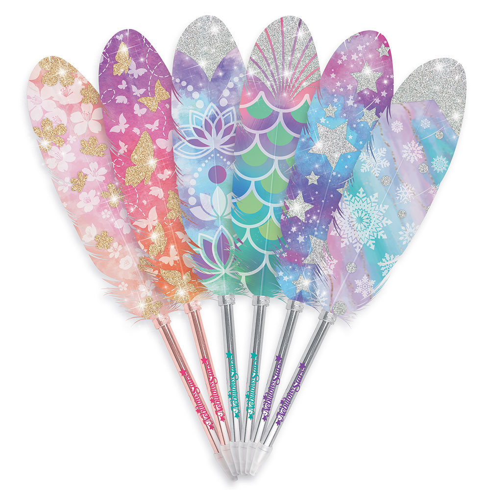 Kolekcija od 12 pernatih kemijskih olovki za pisanje. Dvanaest lijepih uzoraka ispisanih na pravom perju. Artikl je sortiran, cijena je za 1kom.