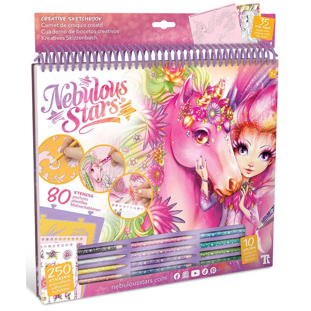 • komplet uključuje 35 ružičastih stranica za skiciranje, 80 šablona, 4 uzorka koji se utrljaju, 250 naljepnica, 12 bojica i 12 tehnika crtanja.