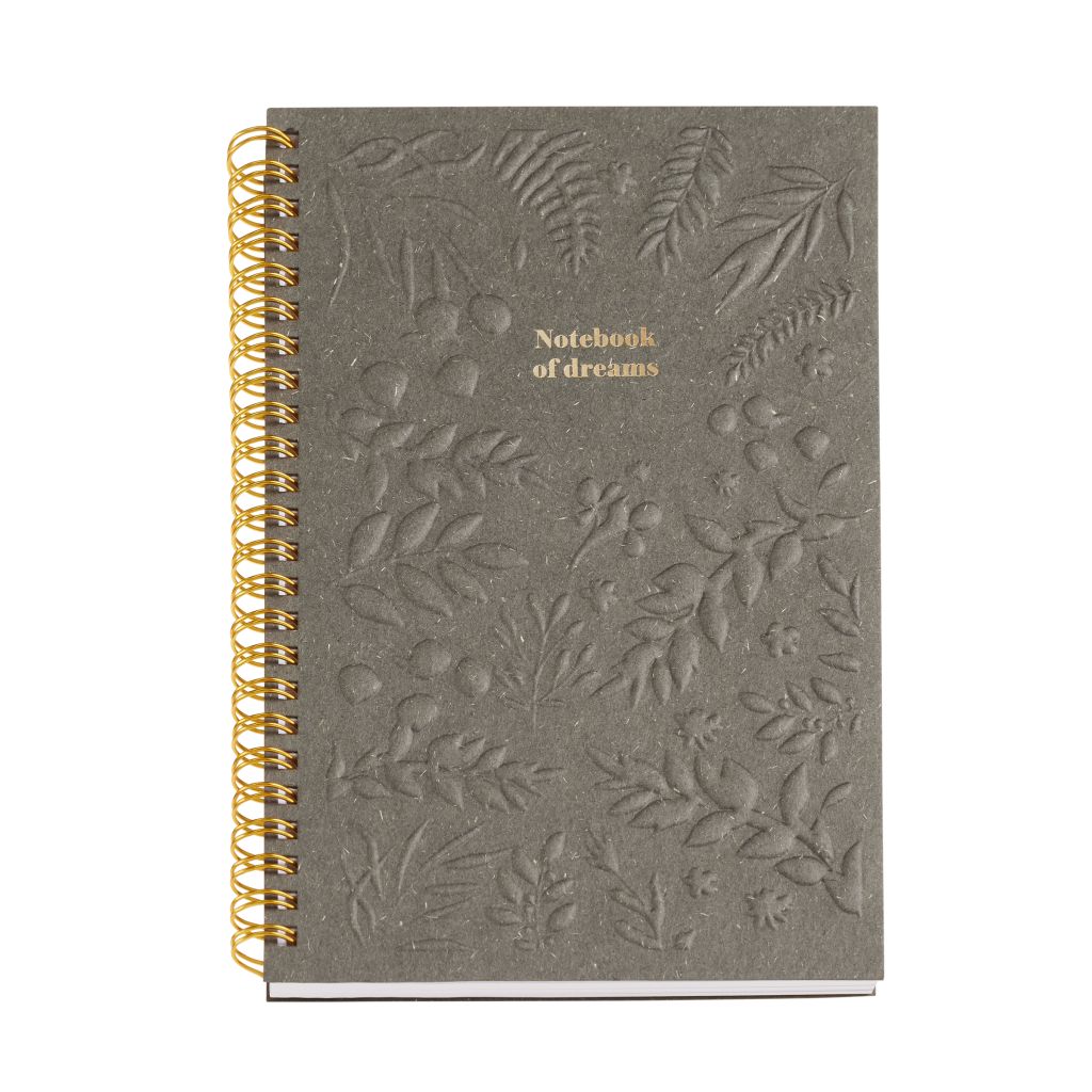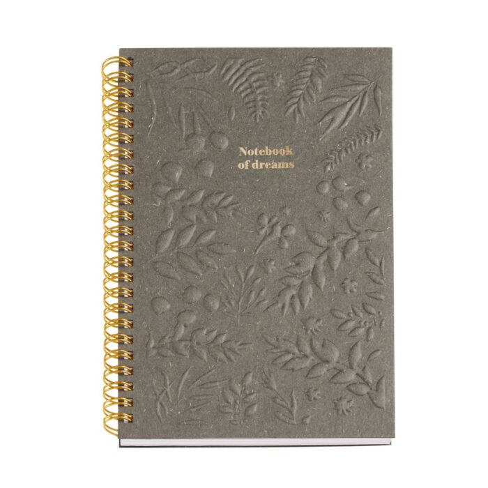 Kvalitetne stranice ne propuštaju ništa i nude dovoljno prostora za sve vaše ideje, planove, skice i razmišljanja. Ovaj spiralni notes je elegantne sive boje s reljefnim kartonskim materijalom i zlatnim natpisom. Papir u boji slonovače.