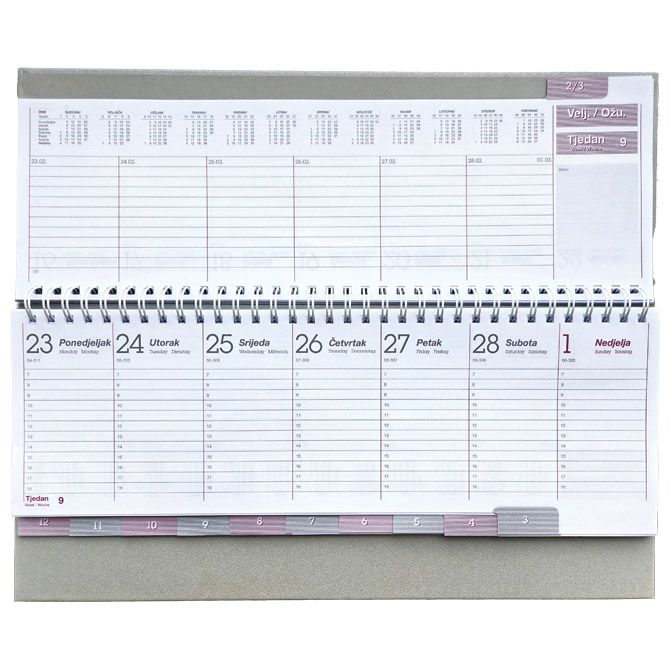 Planer stolni tjedni D42, korica je izrađena od materijala koji je pogodan za: sitotisak, suhi žig, foliotisak