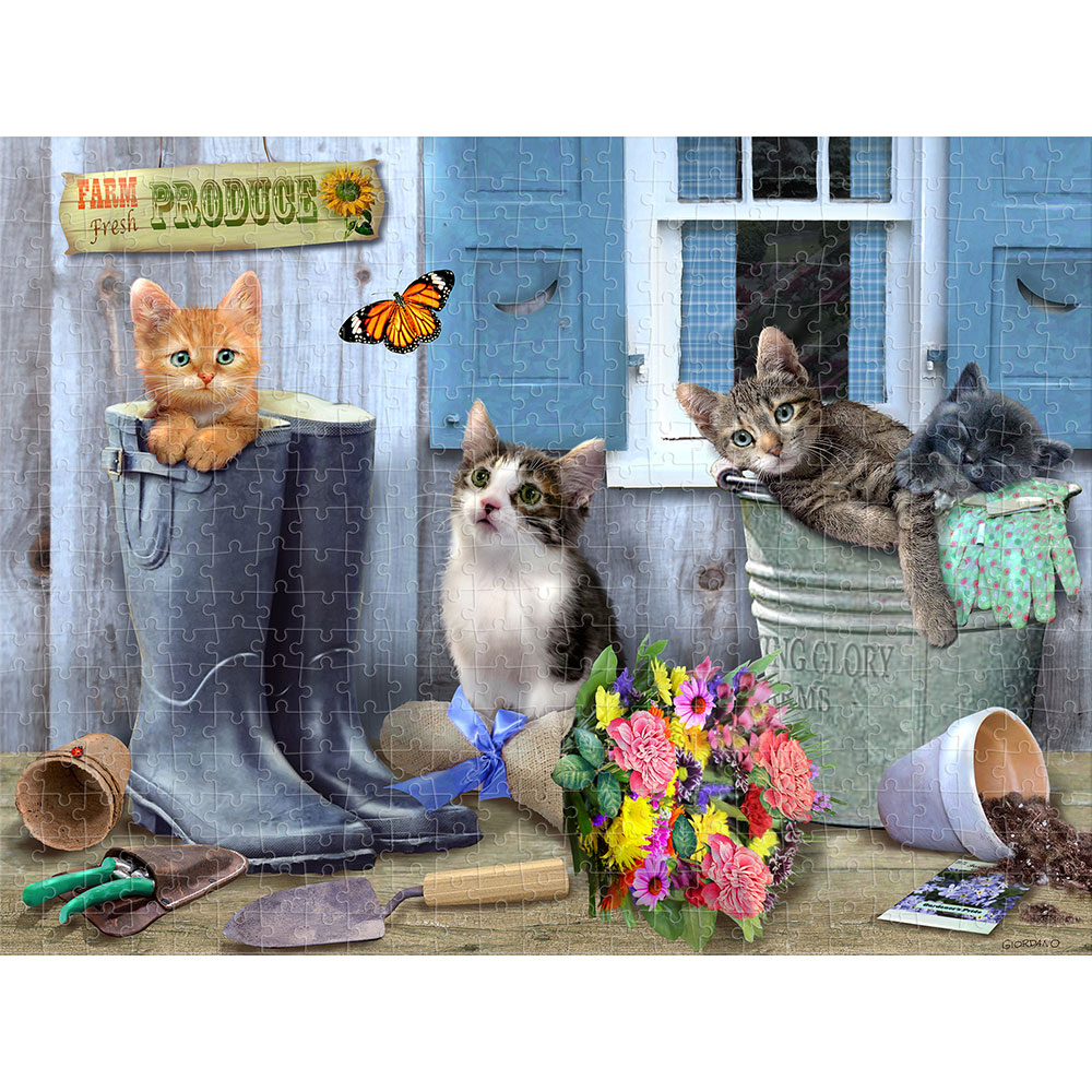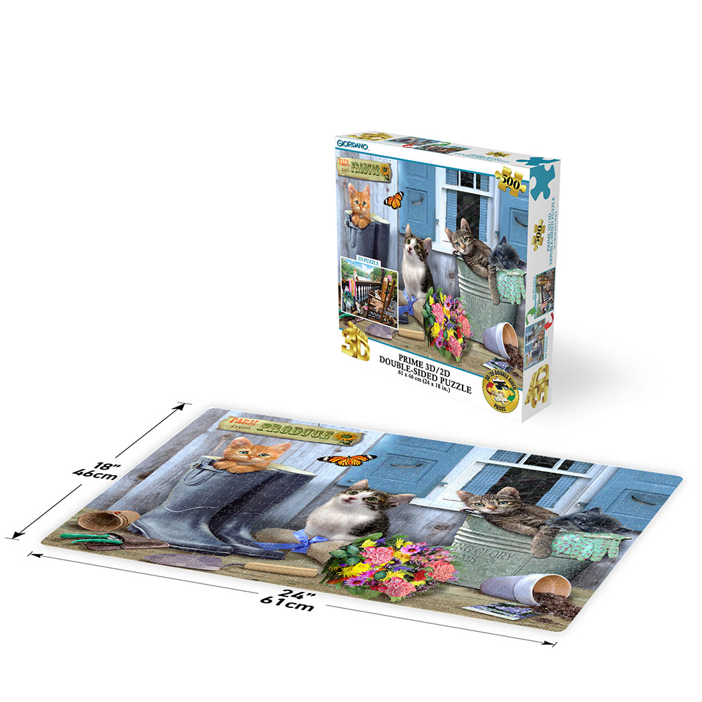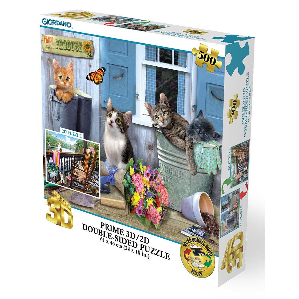 Puzzle 2D/3D – Mačići kraj jezera / Svježi proizvodi s farme