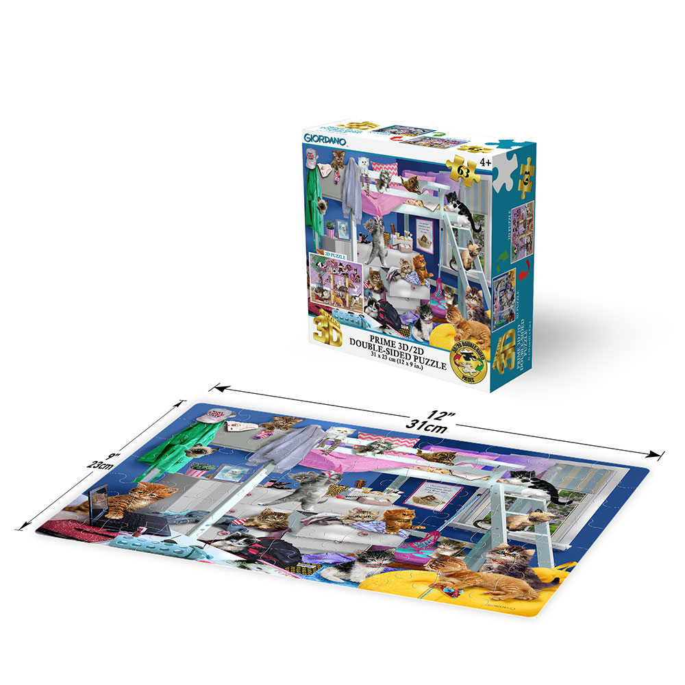Dvostrane slagalice Giordano vode vas u svijet preslatkih maca i razigranih pasa, a jednim okretom dolazi potpuno iznenađenje! s jedne strane klasična 2d ilustracija, a s druge čarobni 3d efekt koji oživljava svaki komadić.