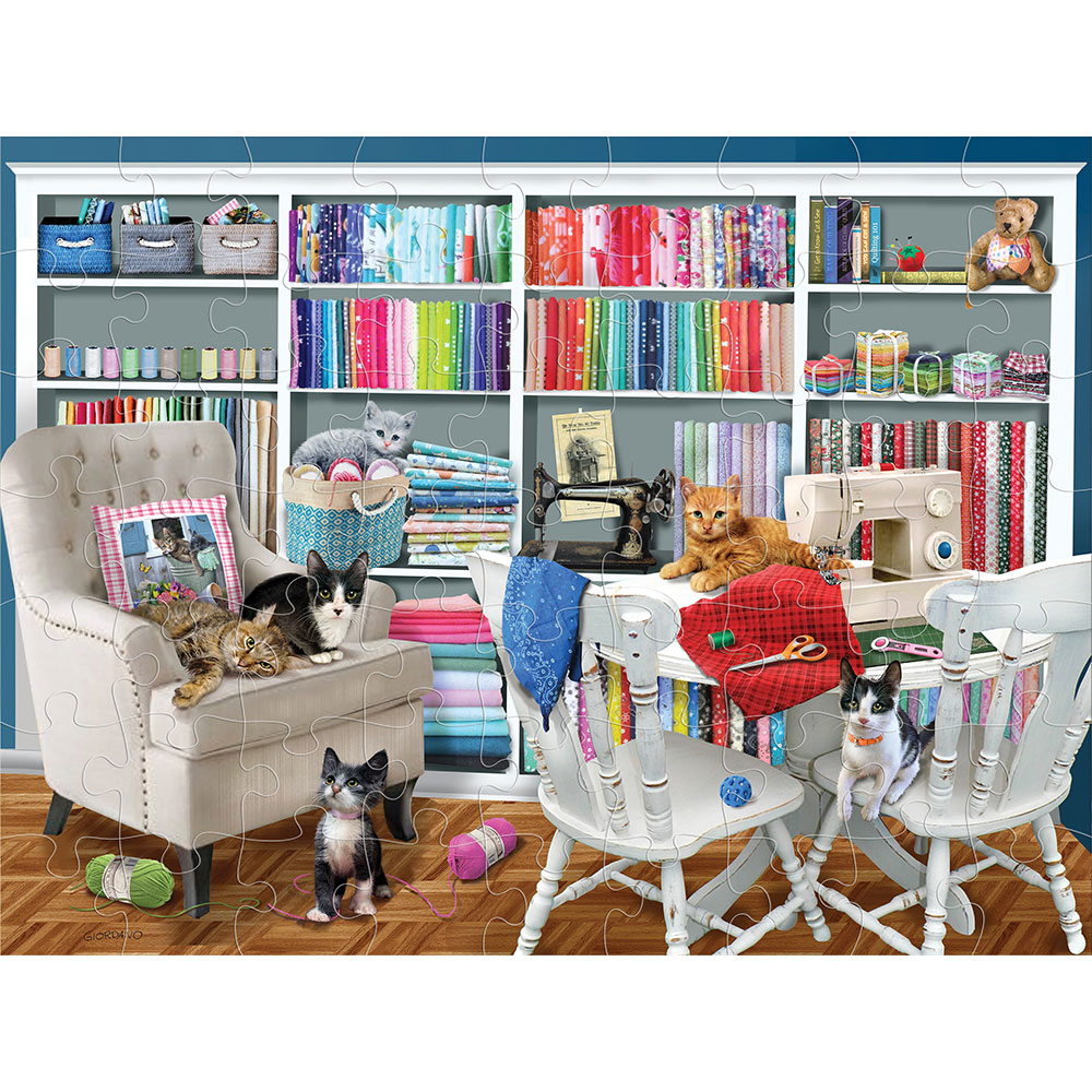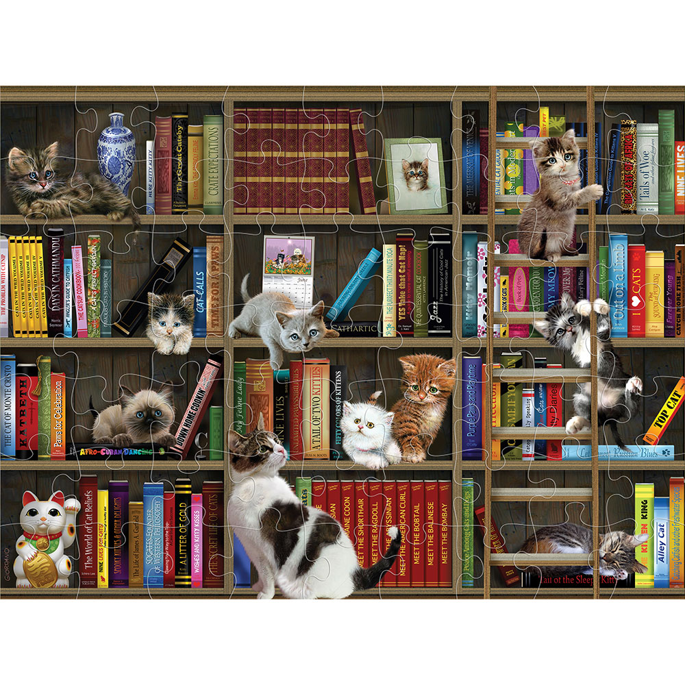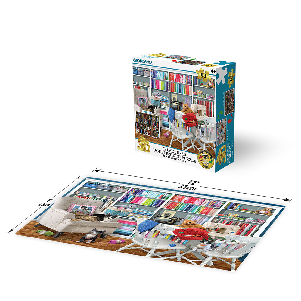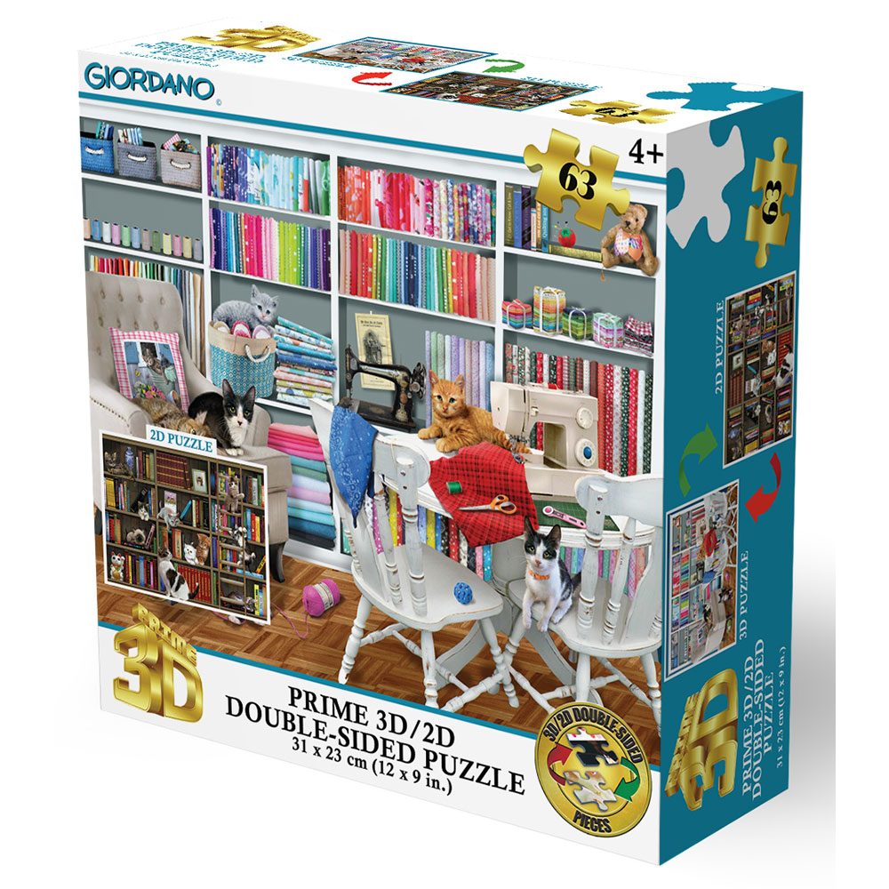 Puzzle 2D/3D – Mačići u šivaćoj sobi / Mačja knjižnica 63 ko
