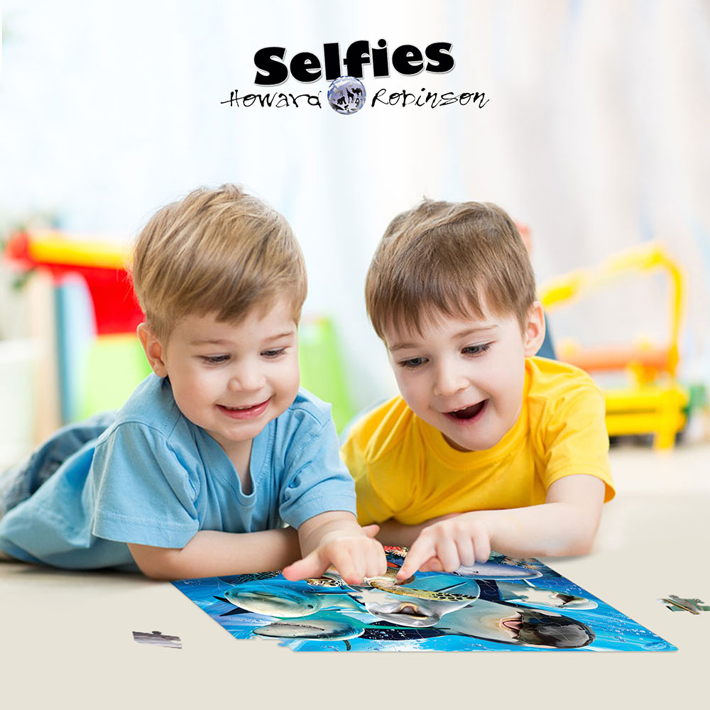 Super 3d puzzle sa zabavnim selfie slikama iz serije Howard Robinson. Dimenzija sastavljene slike je 31×23 cm i sadrži 63 komada.