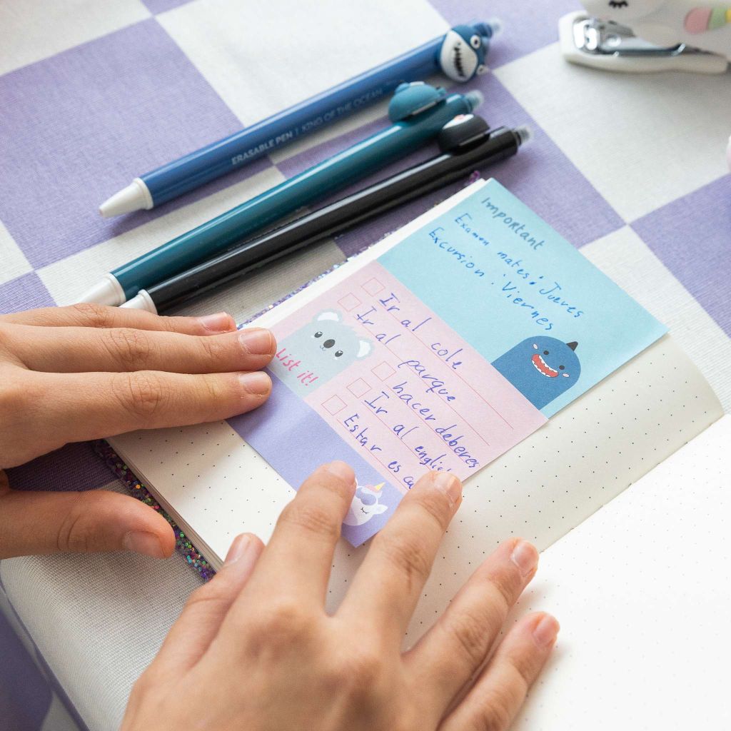 Set sadrži 10 komada samoljepljivih blokova i zastavica u različitim veličinama.