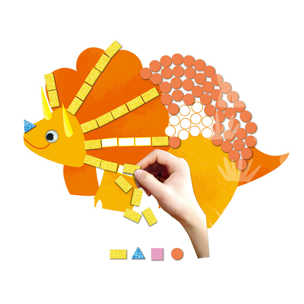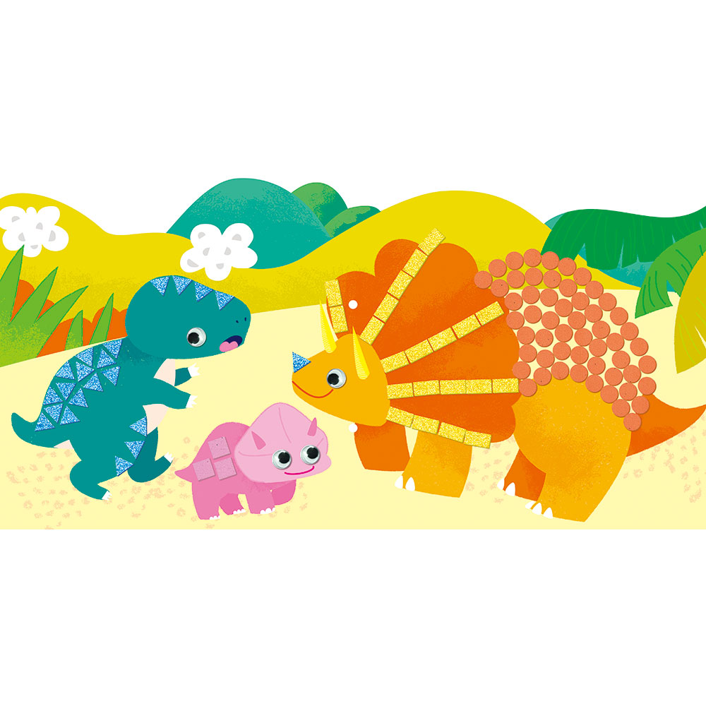 Djeca će obožavati stvarati vlastitu slikovnicu uz pomoć velikih spužvastih naljepnica pomoću kojih mogu izraditi svoja prva umjetnička djela. Naljepnice su jednostavne za korištenje – samo ih odlijepite, uskladite boje i oblike te zalijepite na pravo mjesto!