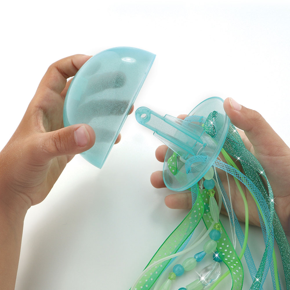 • Komplet uključuje: 3 kupole koje svijetle u mraku, vješalicu u obliku koraljne grane, 3 navlake za kupole, 63 perlice koje svijetle u mraku, 70 šarenih perlica, 3 mrežaste cijevne uzice, traku, vrpce koje svijetle u mraku, elastičnu vrpcu i 3 svjetlucave naljepnice.