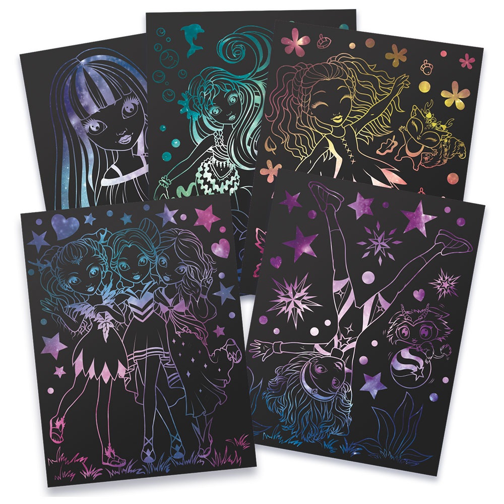 Otkrij šarenu zvjezdanu galaksiju ispod svakog od ovih pet kartona za struganje i crtanje.